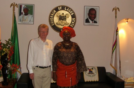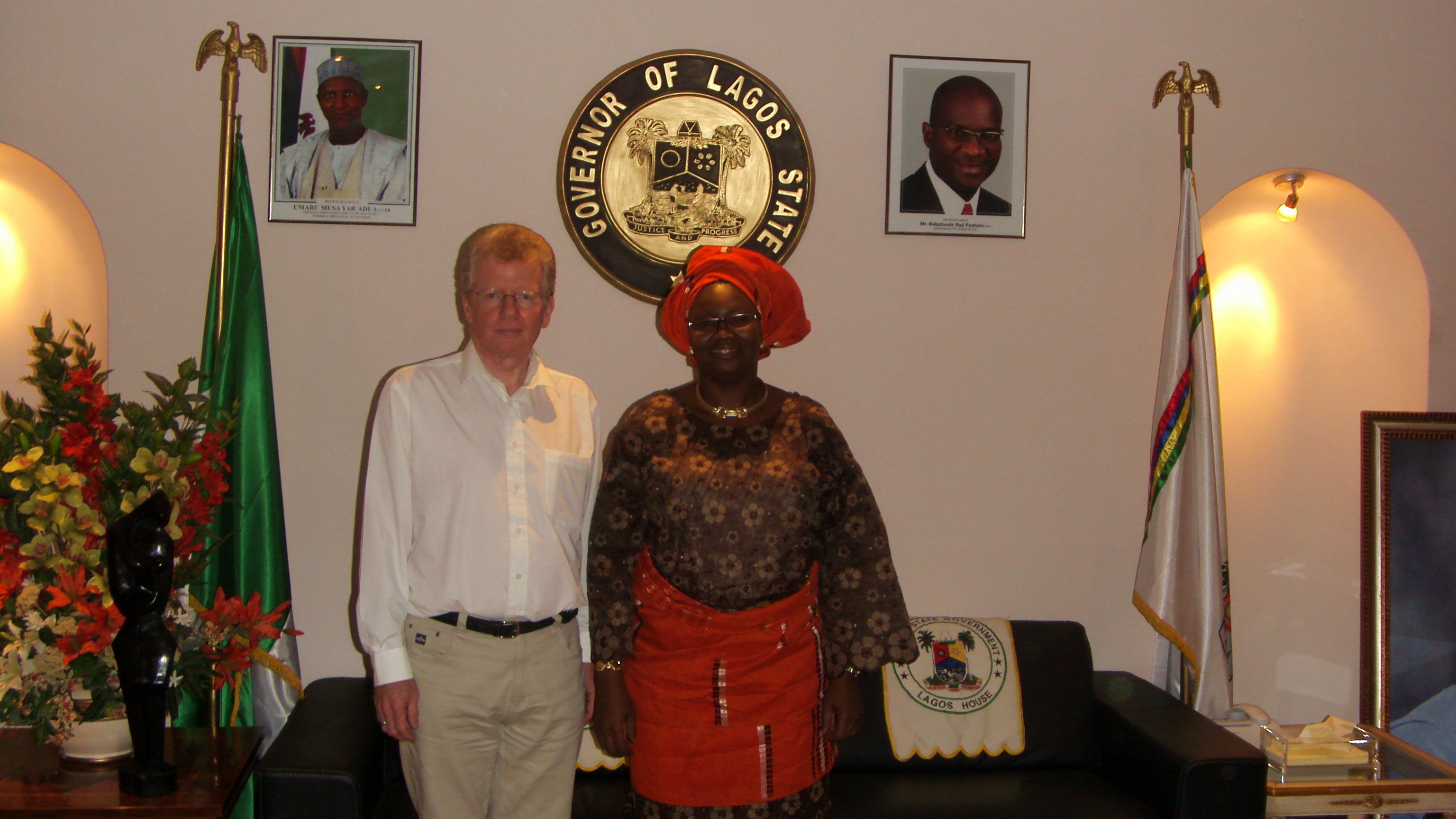 Her Excellency Mrs Fashola with Joe Cromby during a visit to Her Excellency