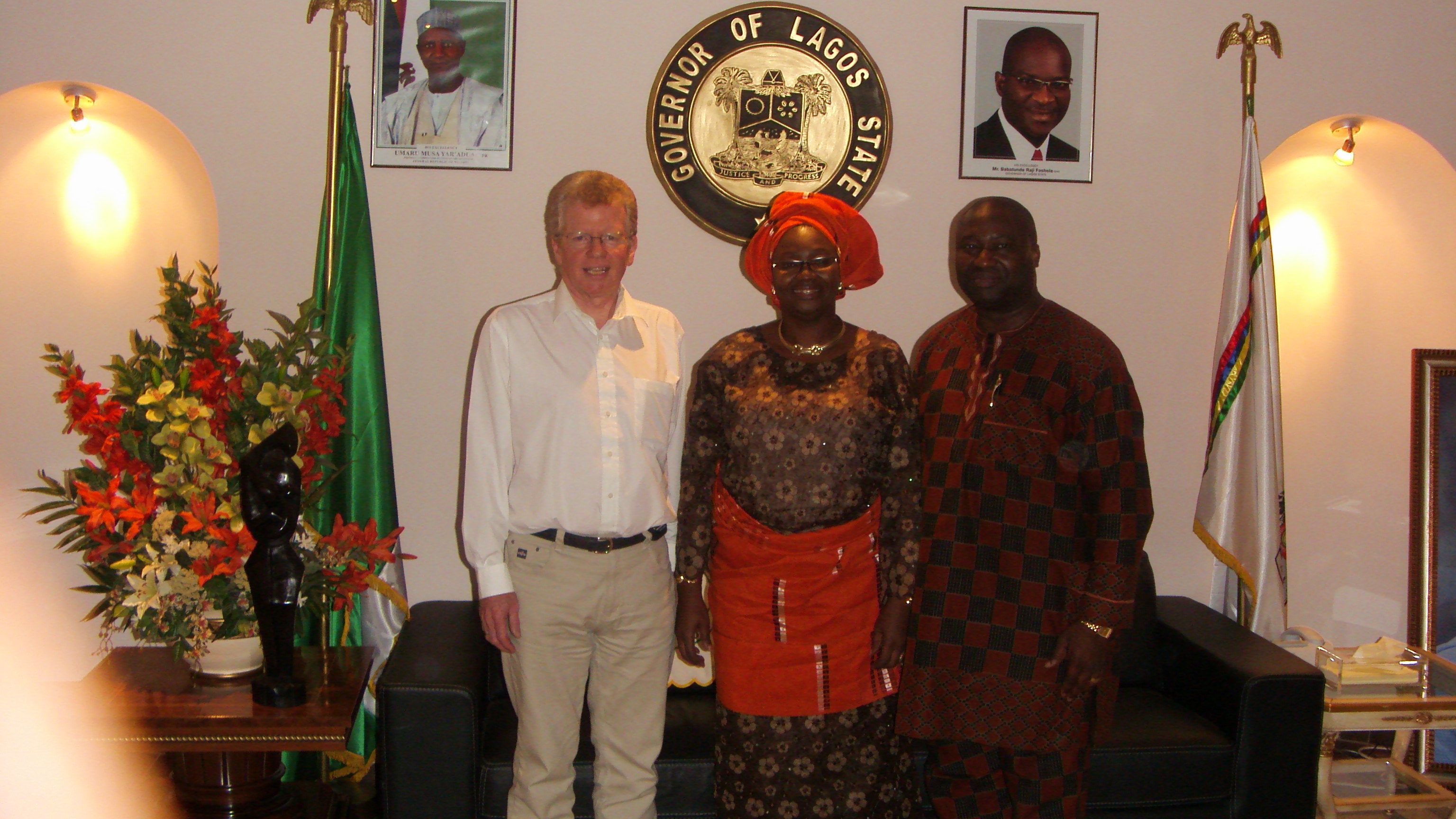 Mr Salau and Mr Joe Cromby with Her Excellency Mrs Fashola