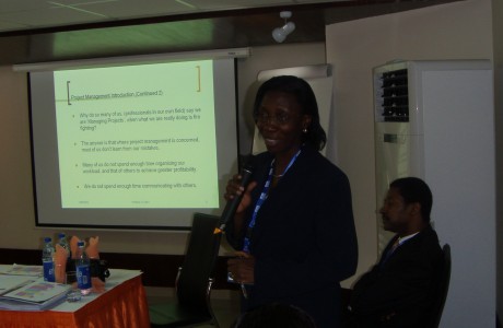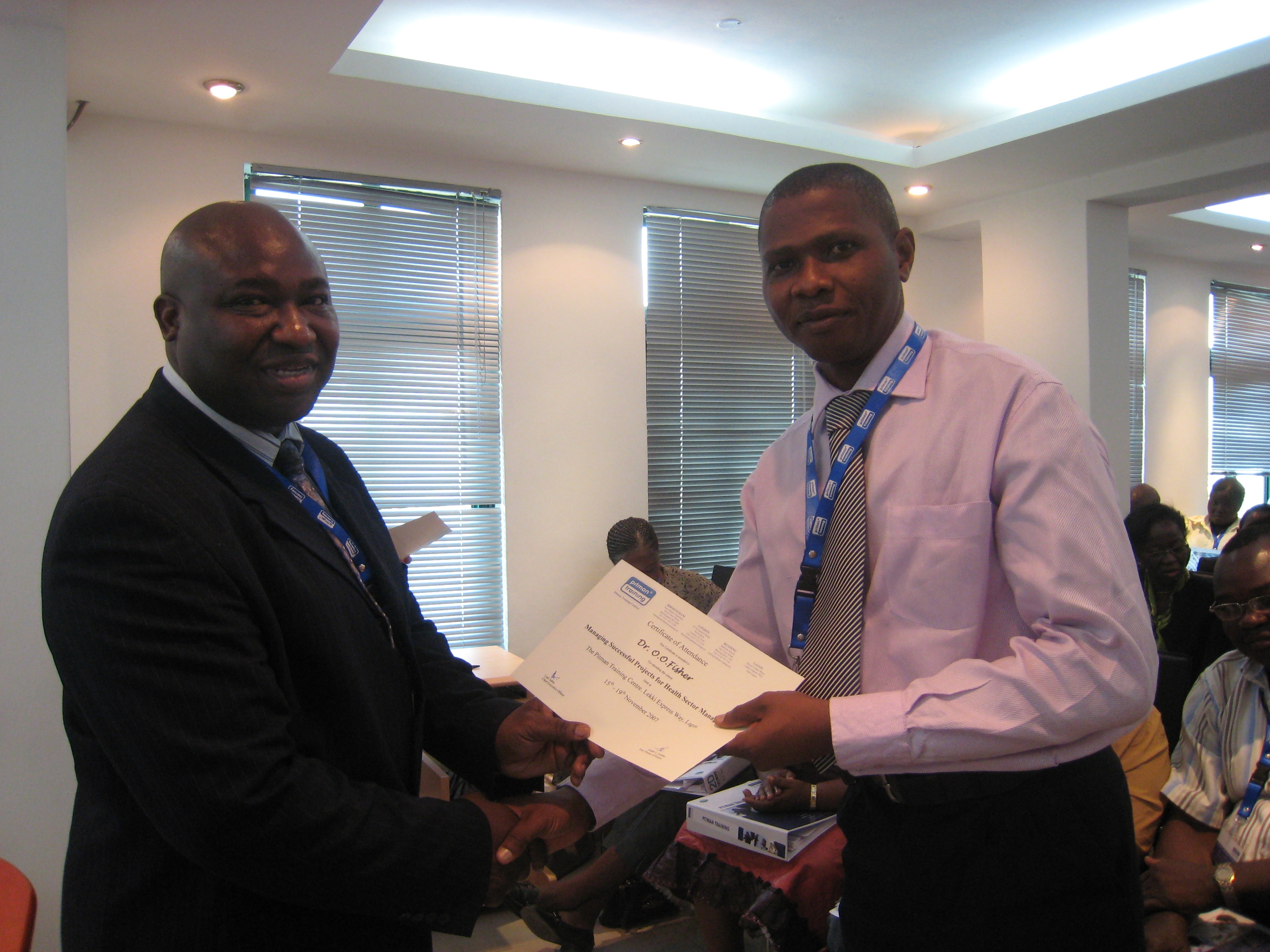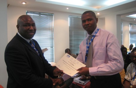 Mr Salau awarding a certificate to a traineee