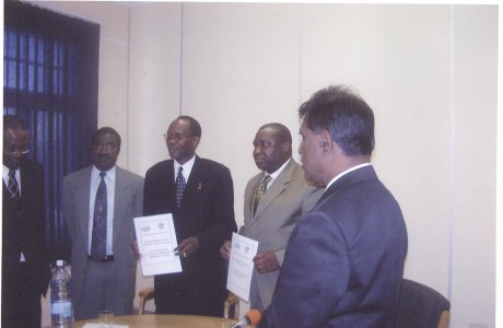 Mr Salau and Mr David Namwadu, Minister for Education Namibia