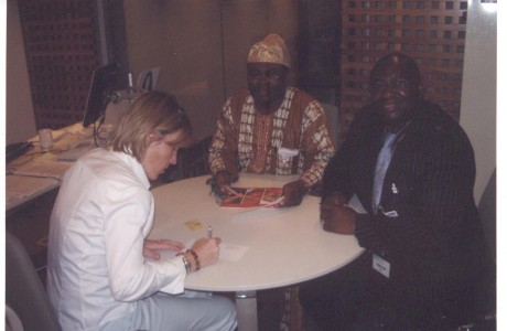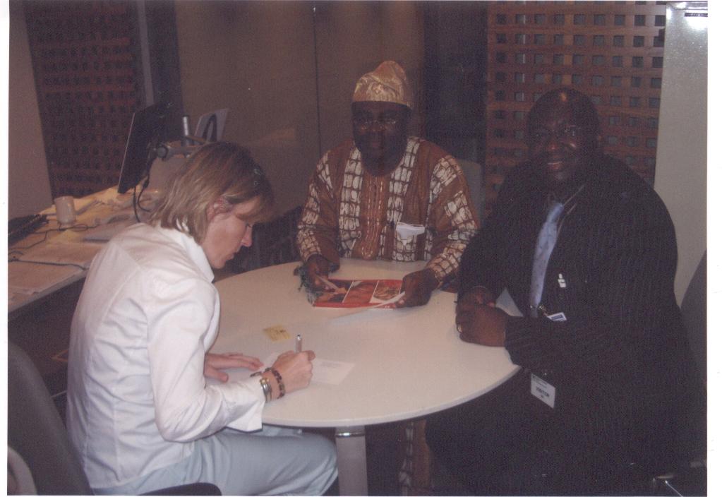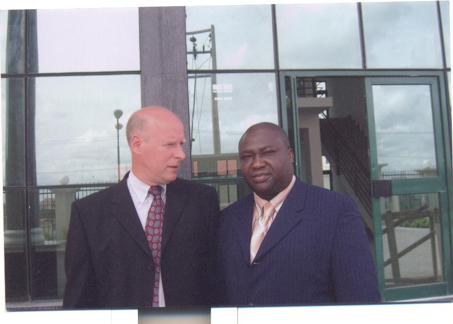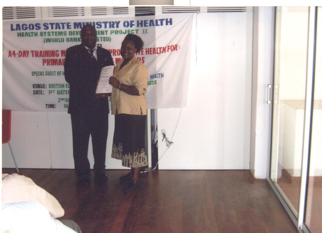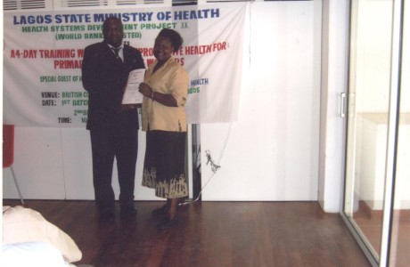 Mrs Sam Harvey former Director British Council with former Health Commissioner Dr Leke Pitan and Mr salau